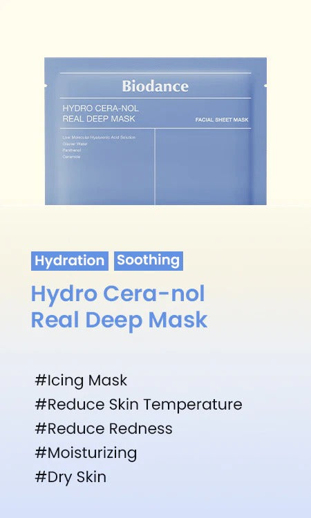 Experience the ultimate rescue for dehydrated, sensitive, and stressed skin with the Biodance Hydro-Ceranol Real Deep Mask. This advanced sheet mask is specifically engineered with a powerful complex of Ceramides and Hydrating agents to intensely replenish moisture and reinforce your skin's natural protective barrier.