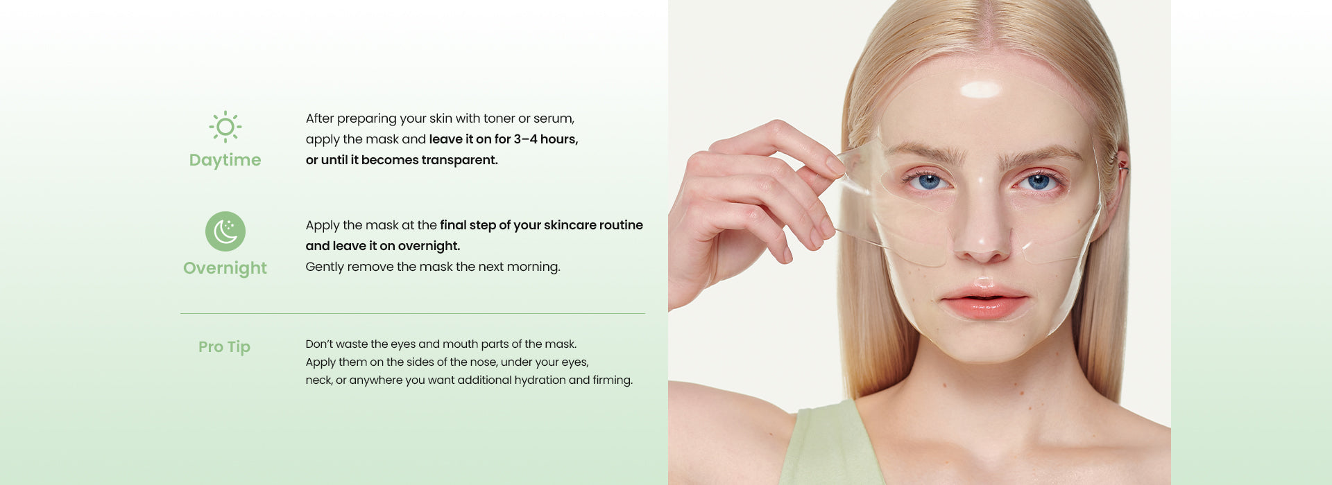 Refreshing Sea Kelp Real Deep Mask is a hydrogel mask molded with essence to provide hydration. Longer use enhances absorption of safe ingredients and the excellent adhesion overtime makes them suitable for overnight or 3-4 hours during the day.